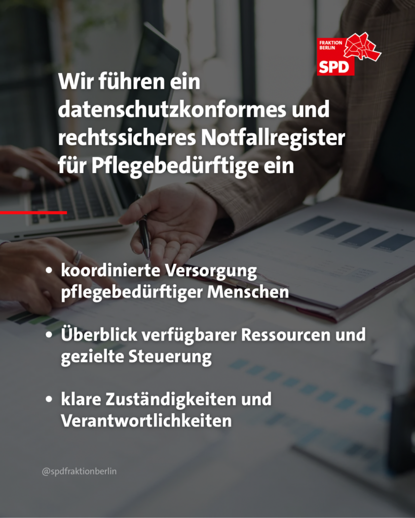 - Einführung eines behördlichen Notfallregisters für pflegebedürftige Menschen