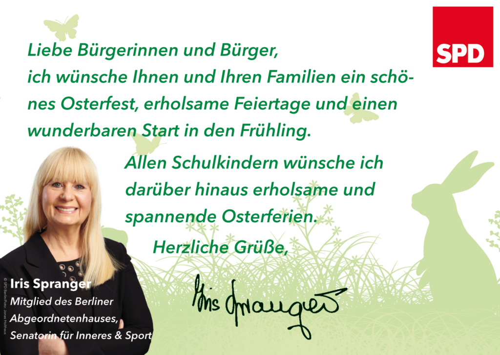 Bei Fragen oder Problemen steht Ihnen Iris Spranger natürlich weiterhin zur Verfügung.